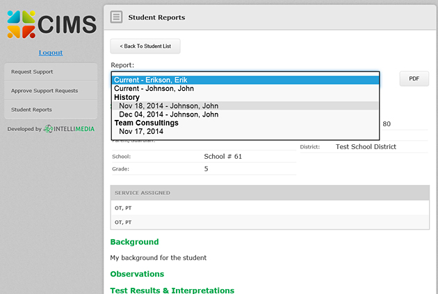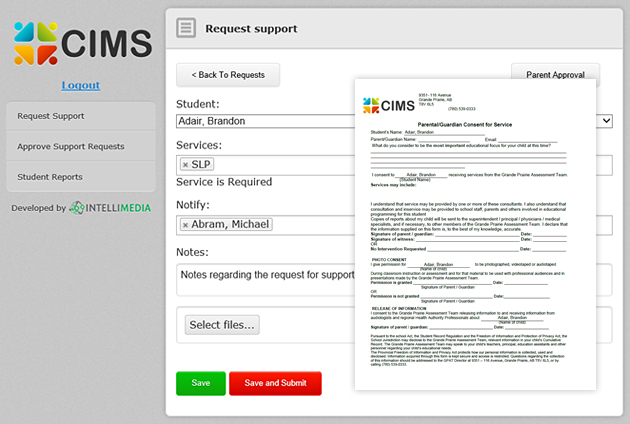 CIMS Integration between School Authorities Student Information System (SIS) and CIMS |