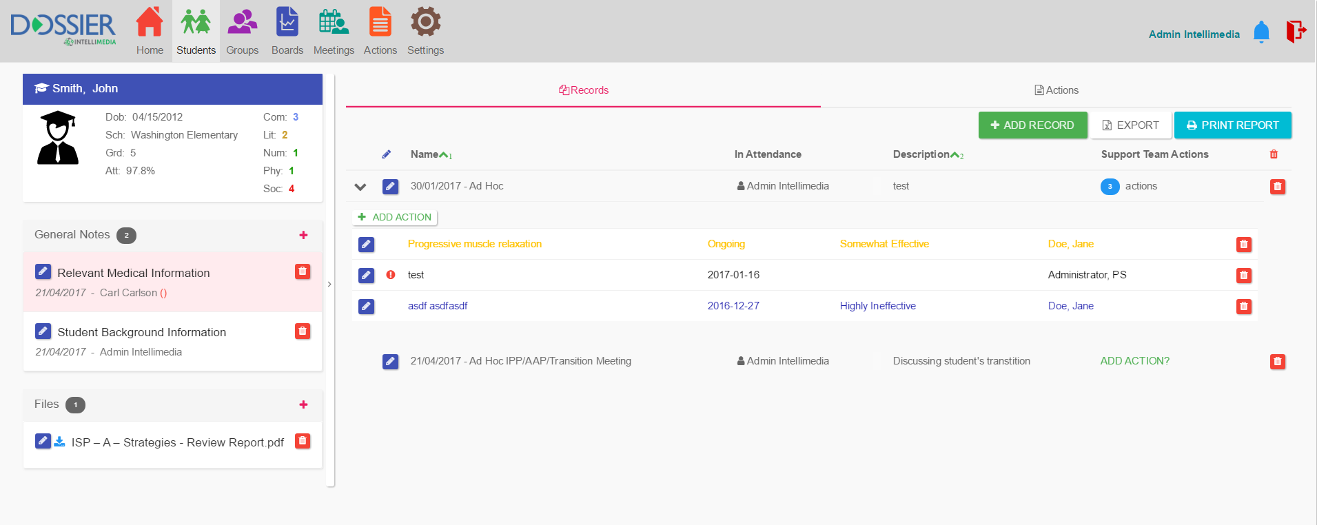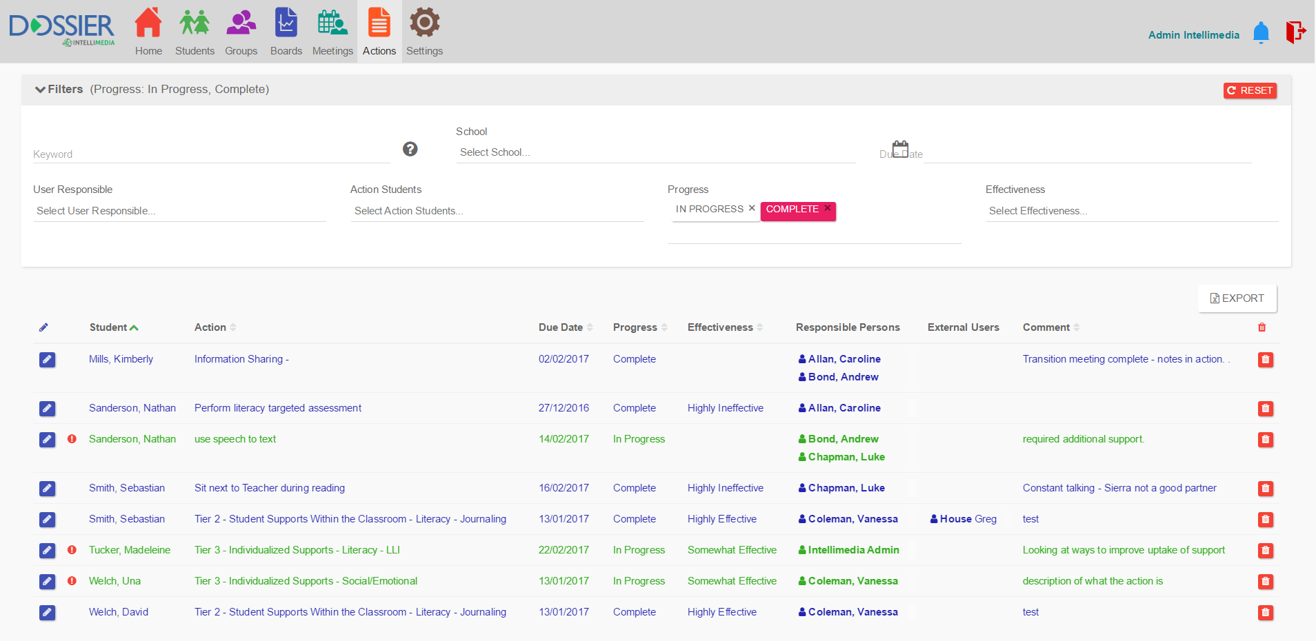 Conduct team meetings to identify and discuss the needs of multiple students, with all notes, actions and interventions determined then saved into individual student profiles.